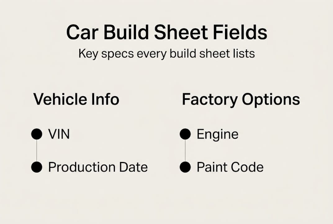 Pro Tip: Never rely on a build sheet from a single source without cross-checking. A seller-provided build sheet should always be verified against the vehicle's VIN through an independent lookup. Discrepancies are a red flag worth investigating before you sign anything.